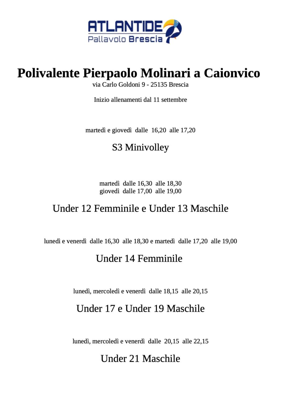 Inizia Lunedì 15 settembre il programma delle attività giovanili della Atlantide Pallavolo Brescia per l’anno 2025/2026.